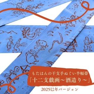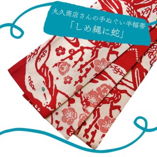 この帯は、丸久商店さんの干支手ぬぐいを使用。
