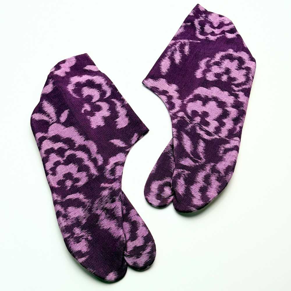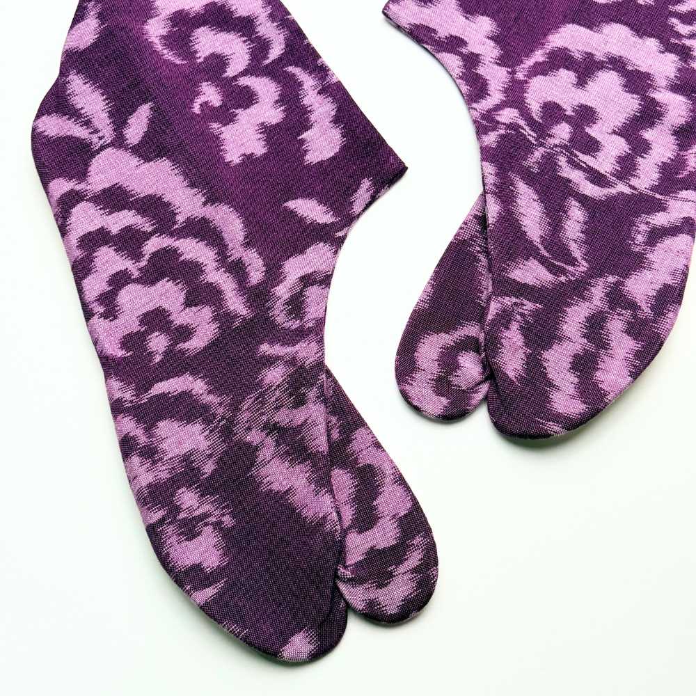 【久留米絣】野村織物さんの柄足袋《コットンフラワー》あずきパープル|日本製・木綿着物に合う柄足袋