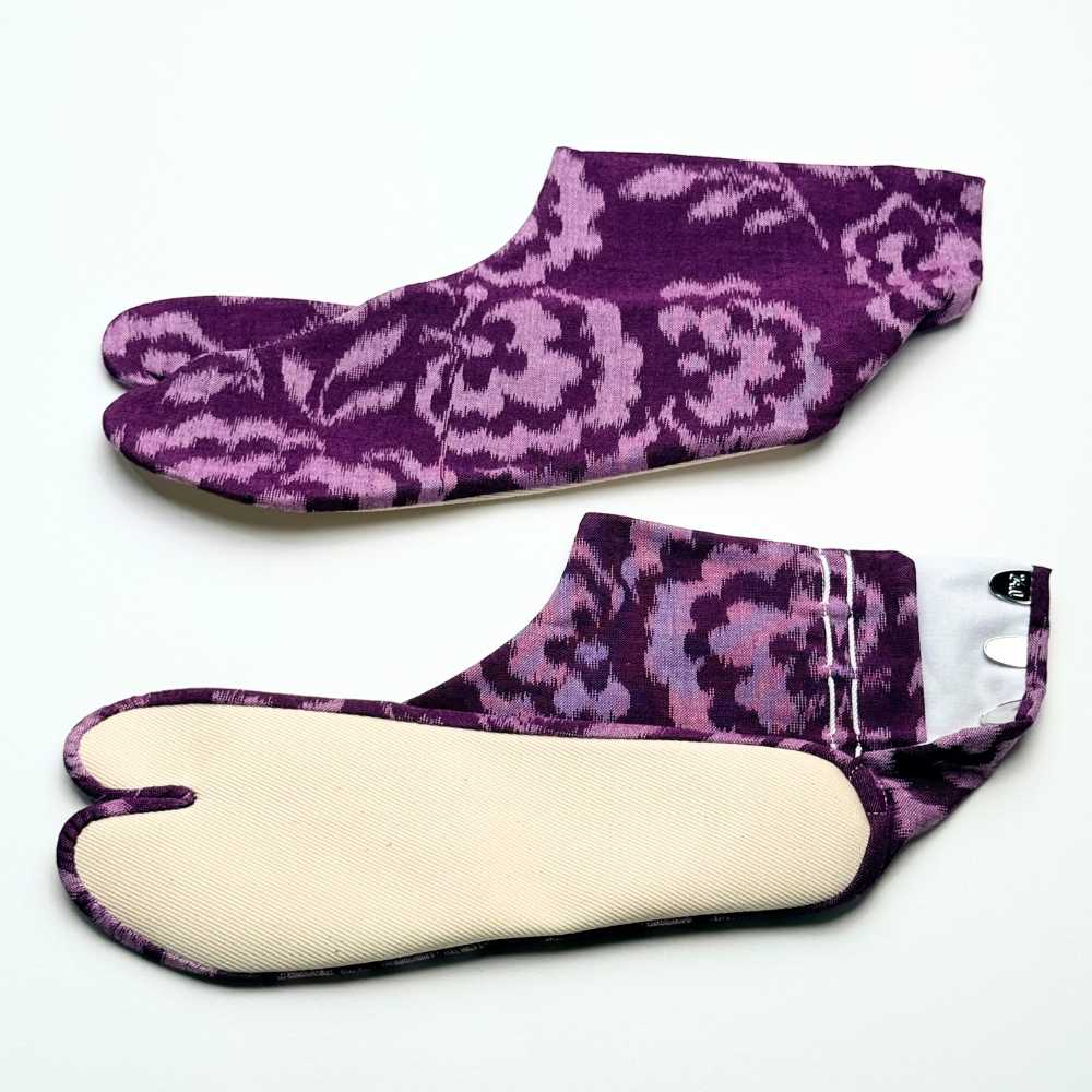 【久留米絣】野村織物さんの柄足袋《コットンフラワー》あずきパープル