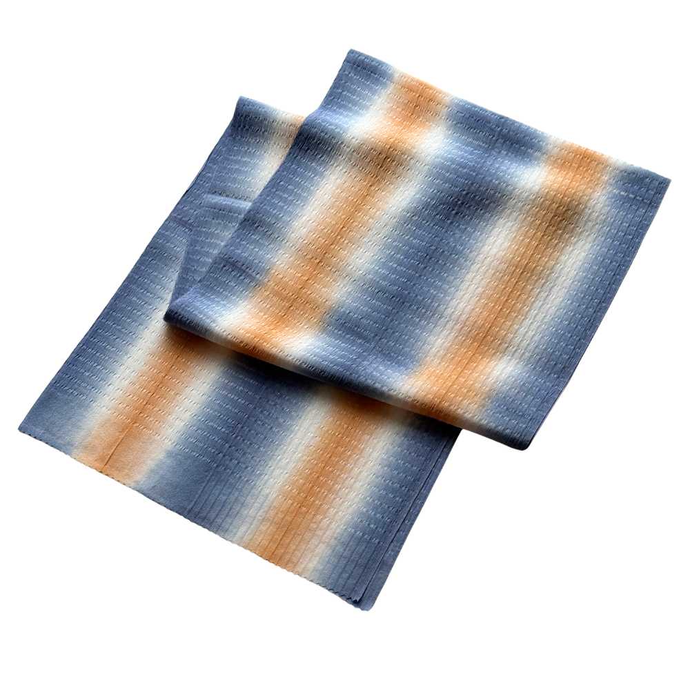 【藤井絞】通年使える2WAY帯揚げ「花結」ブルー×オレンジ|リボン絞り・絹100%|コレカラキモノ企画室